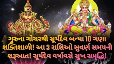 ગુરુના ગોચરથી સૂર્યદેવ બન્યા 10 ગણા શક્તિશાળી! આ 3 રાશિઓ સુવર્ણ સમયની શરૂઆત!