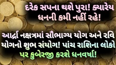 આર્દ્રા નક્ષત્રમાં સૌભાગ્ય યોગ અને રવિ યોગનો શુભ સંયોગ!પાંચ રાશિના લોકો પર કુબેરજી કરશે ધનવર્ષા!