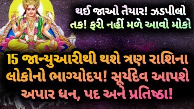 15 જાન્યુઆરીથી થશે ત્રણ રાશિના લોકોનો ભાગ્યોદય! સૂર્યદેવ આપશે અપાર ધન, પદ અને પ્રતિષ્ઠા!