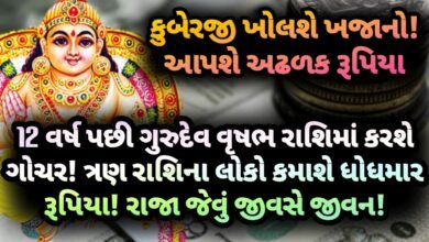 12 વર્ષ પછી ગુરુદેવનું વૃષભમાં ગોચર! ત્રણ રાશિના લોકો કમાશે ધોધમાર રૂપિયા! રાજા જેવું જીવસે જીવન!