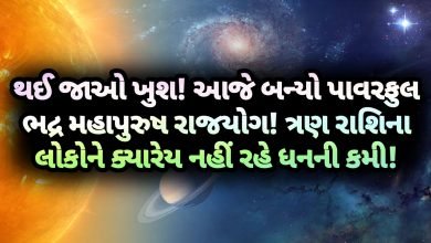 આજે બન્યો પાવરફુલ ભદ્ર મહાપુરુષ રાજયોગ! ત્રણ રાશિના લોકોને ક્યારેય નહીં રહે ધનની કમી! ધોધમાર પૈસા!