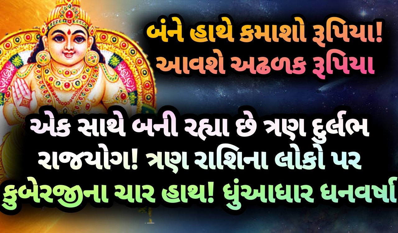 એક સાથે બની રહ્યા છે ત્રણ દુર્લભ રાજયોગ! ત્રણ રાશિના લોકો પર કુબેરજીના ચાર હાથ! ધુંઆધાર ધનવર્ષા