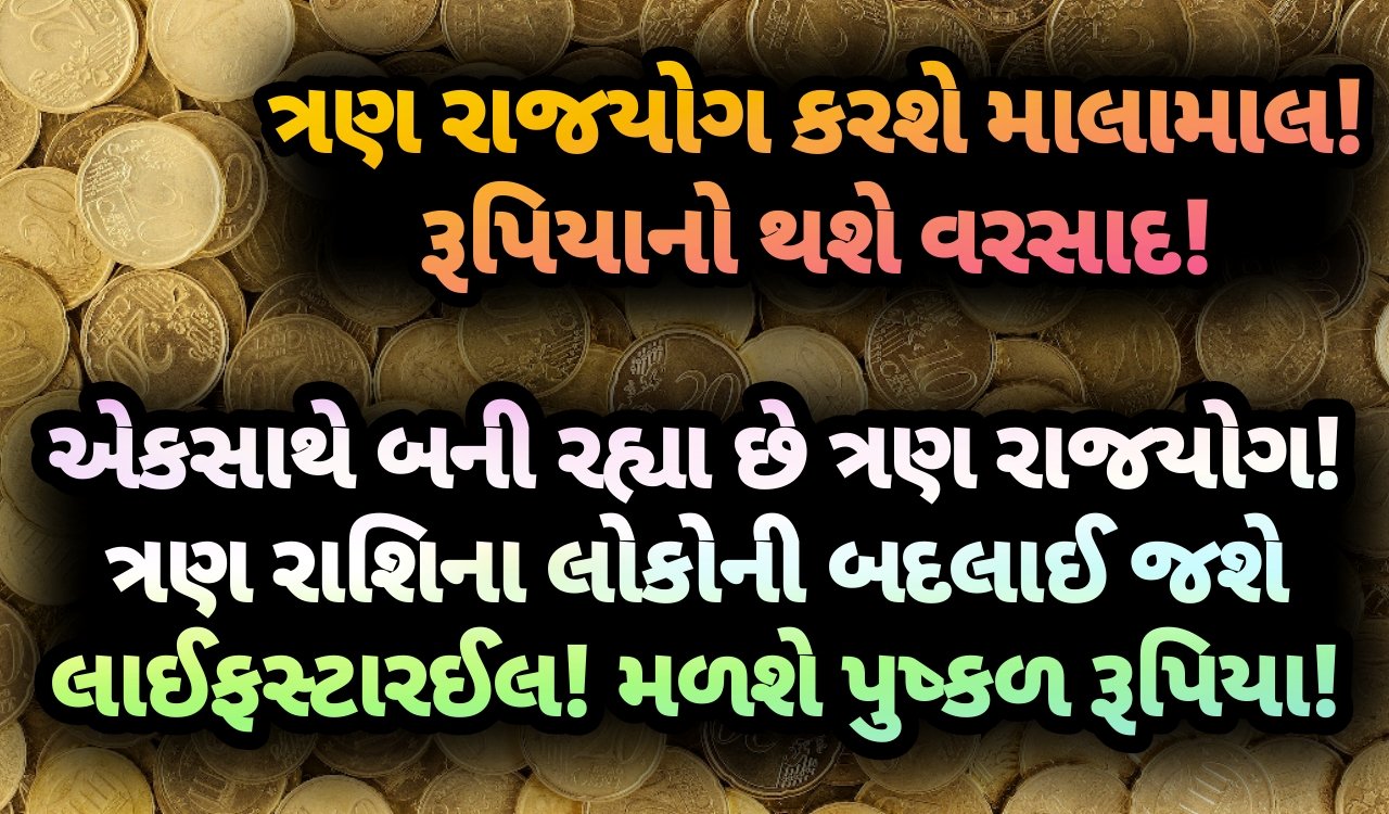 એકસાથે બની રહ્યા છે ત્રણ રાજયોગ! ત્રણ રાશિના લોકોની બદલાઈ જશે લાઈફસ્ટારઈલ! મળશે પુષ્કળ રૂપિયા!
