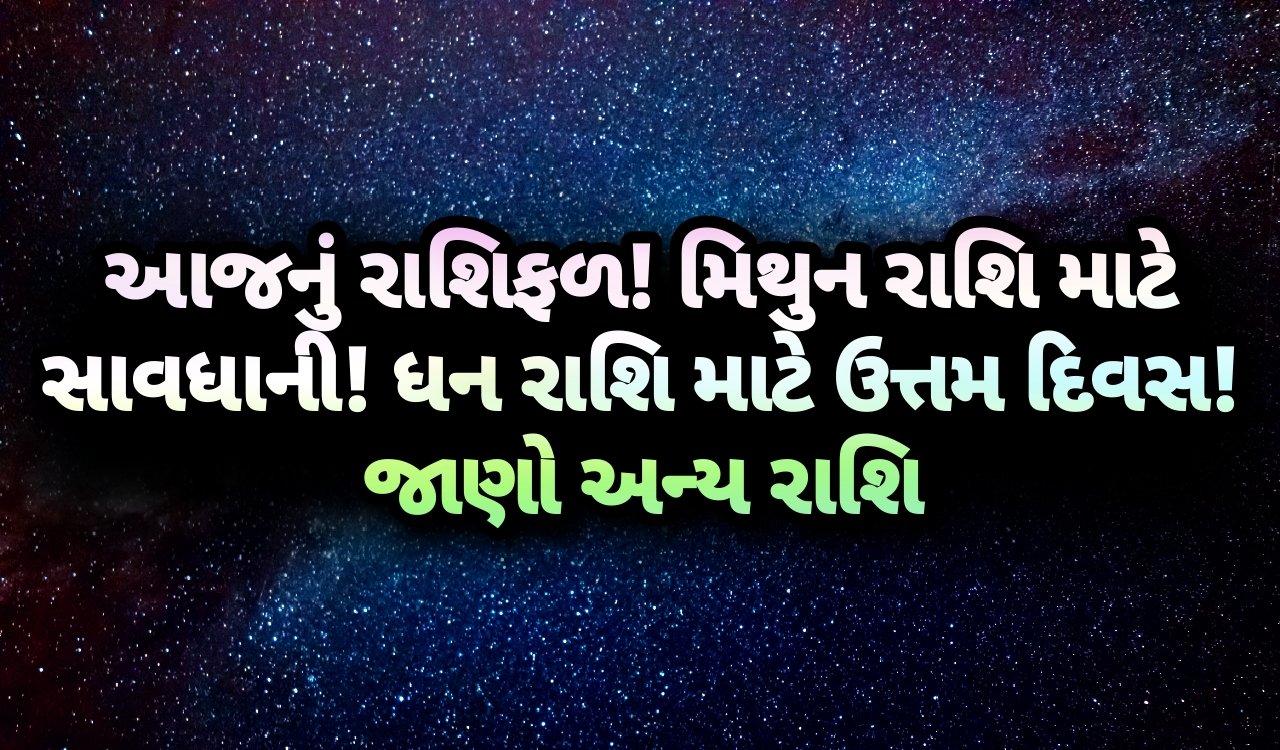 આજનું રાશિફળ! મિથુન રાશિ માટે સાવધાની! ધન રાશિ માટે ઉત્તમ દિવસ! જાણો અન્ય રાશિ