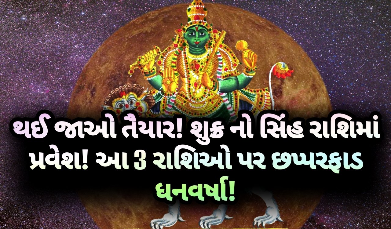થઈ જાઓ તૈયાર! શુક્ર નો સિંહ રાશિમાં પ્રવેશ! આ 3 રાશિઓ પર છપ્પરફાડ ધનવર્ષા!